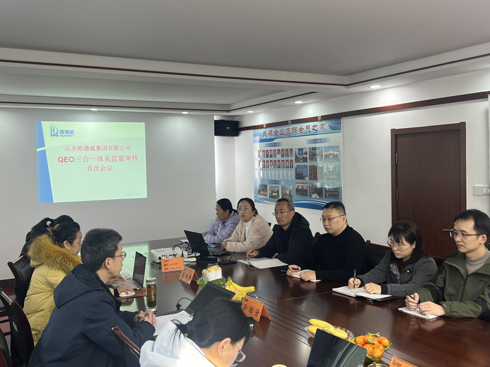2025年12月1日下午2时,公司在会议室召开QEO(质量、环境、职业健康安全)三合一体系监督审核首次会议。
