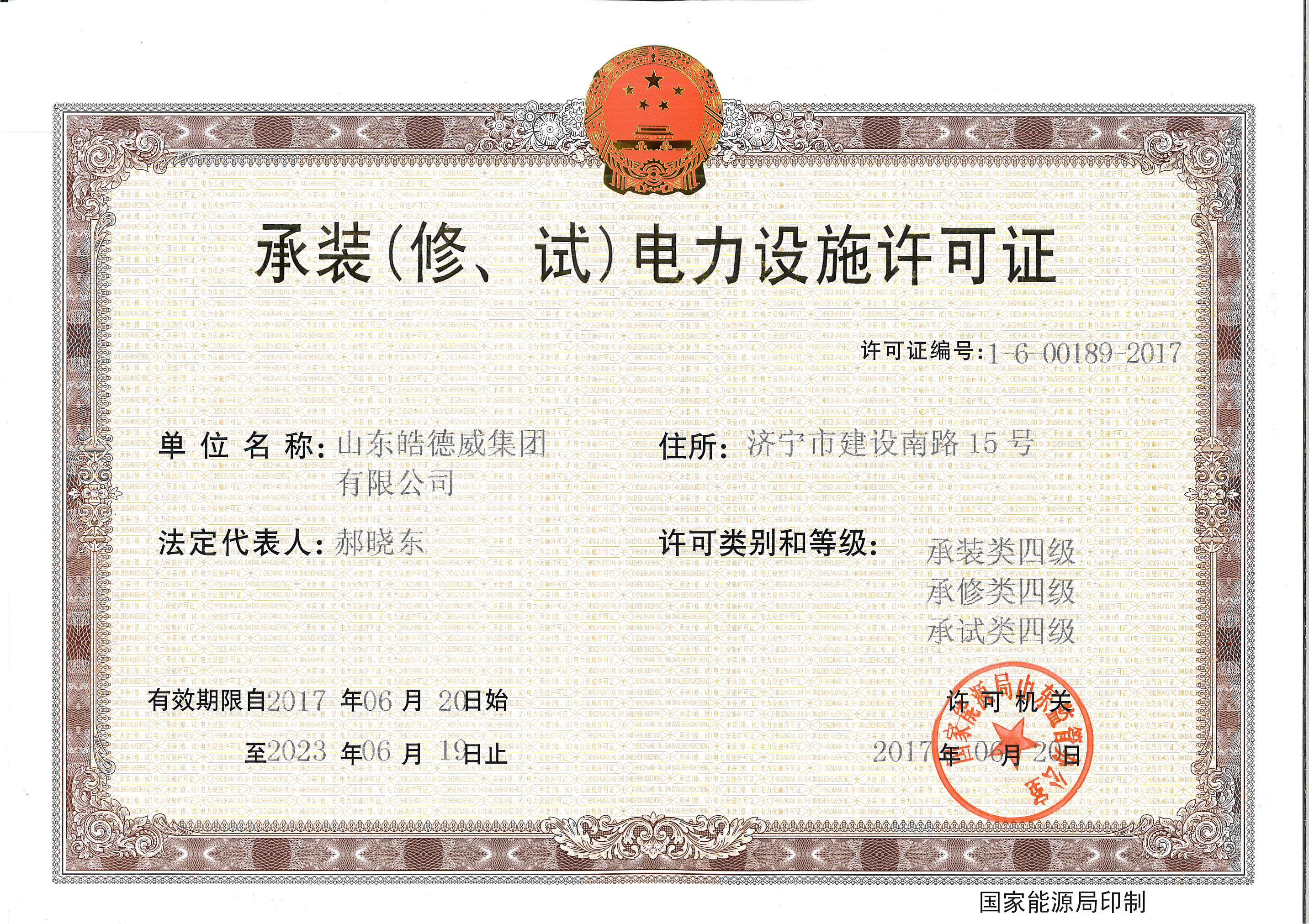 祝贺我公司承装(修、试)电力设施许可证审批通过,办理完成!